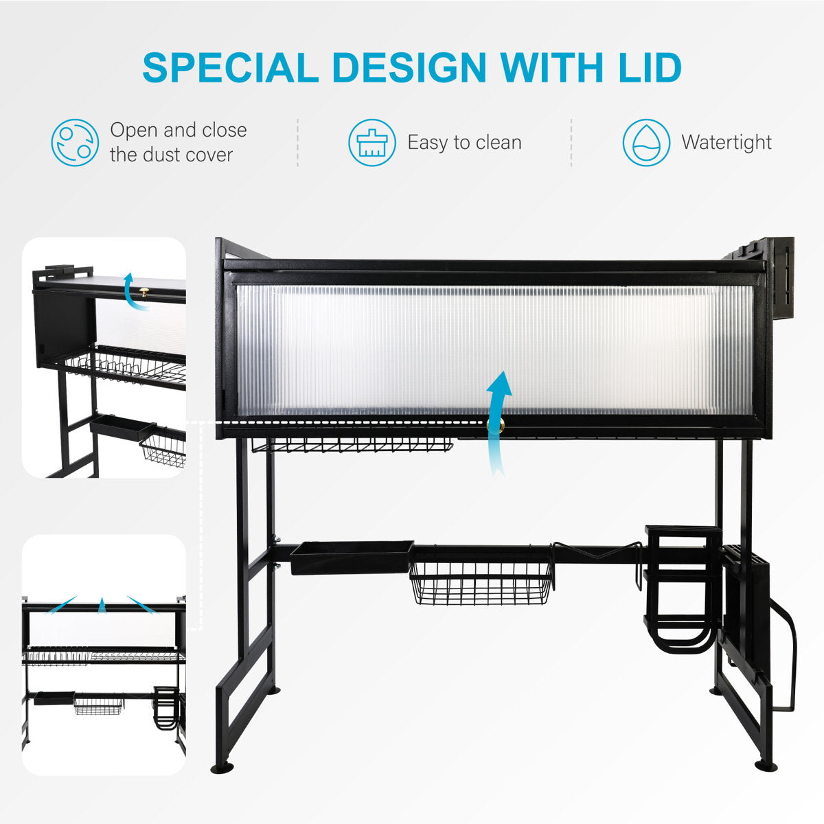 The cabinet-style cover helps protect your items from dust, grease, and splashes, ensuring better hygiene and a cleaner look.